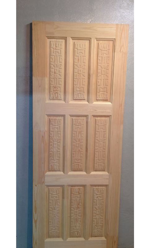 Дверь деревянная сосновая сделанная из массива хвойных пород древесины, имеет по периметру 9 фрезерованных филенок, фрезеровка филенки выполнена только с одной стороны, с другой стороны филенки гладкие.Толщина этой двери 40 мм, двери сосновые из дерева идут в комплекте с коробчатым брусом шириной 65 мм.Если коробчатый брус по ширине не подходит, есть всегда в наличии брус 90,70 мм, брус коробчатый 100 мм изготавливается под заказ.