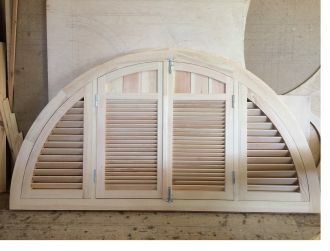 Окно арочное, чердачное с шириной коробки 90 мм, ламели шириной 80 мм, окно имеет по центру створку открывающуюся во внутрь, створка фиксируеться на шпингалет.